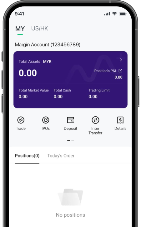Open an account in minutes and deposit in RM to invest in Bursa, US & HK stocks.